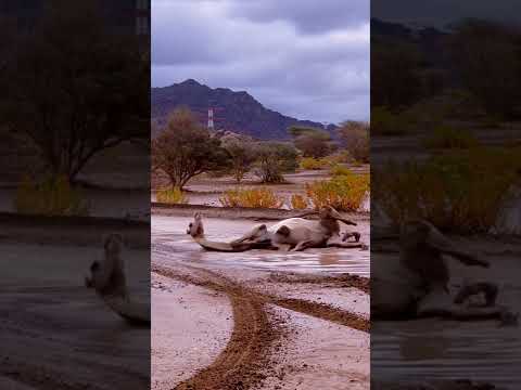 بارش کے پانی میں نہا کر اونٹ بھی مزہ کر رہا ہے۔